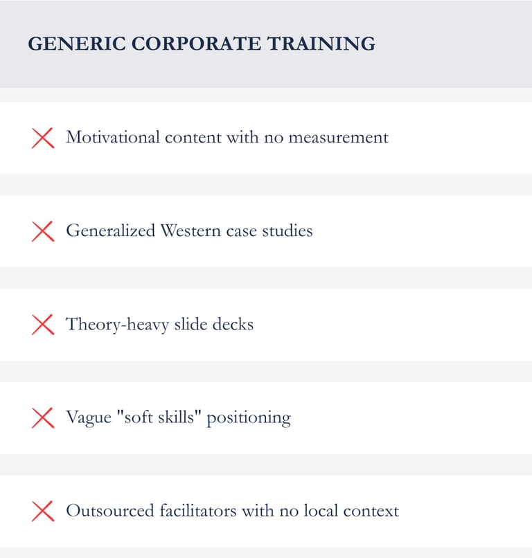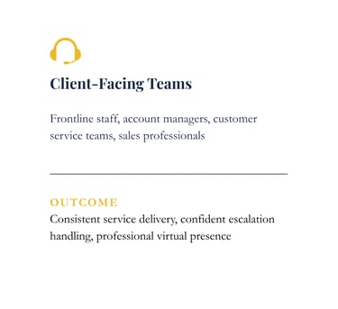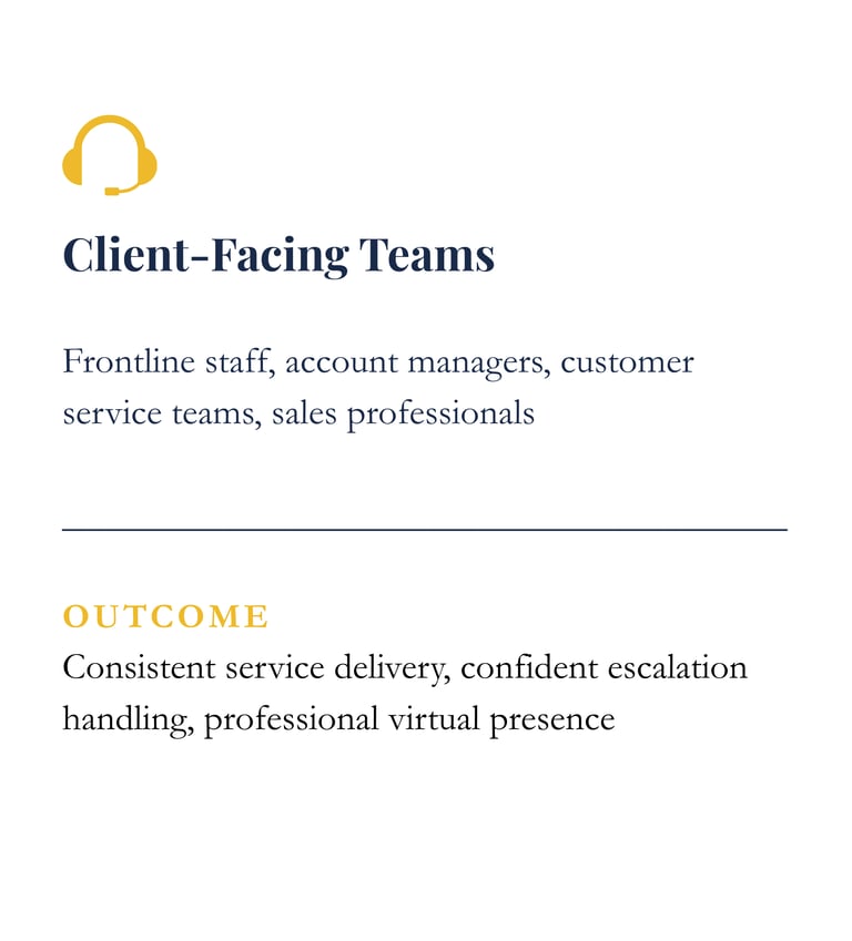 A structured training program that equips managers and client facing professionals with the behavioral protocols required for international standard service delivery and executive level communication.