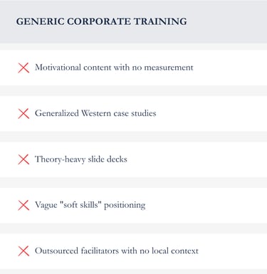But when client-facing interactions lack consistency, when supervisory communication undermines authority, when executive presence is absent in high-stakes moments — your organization loses contracts, talent, and market position.
